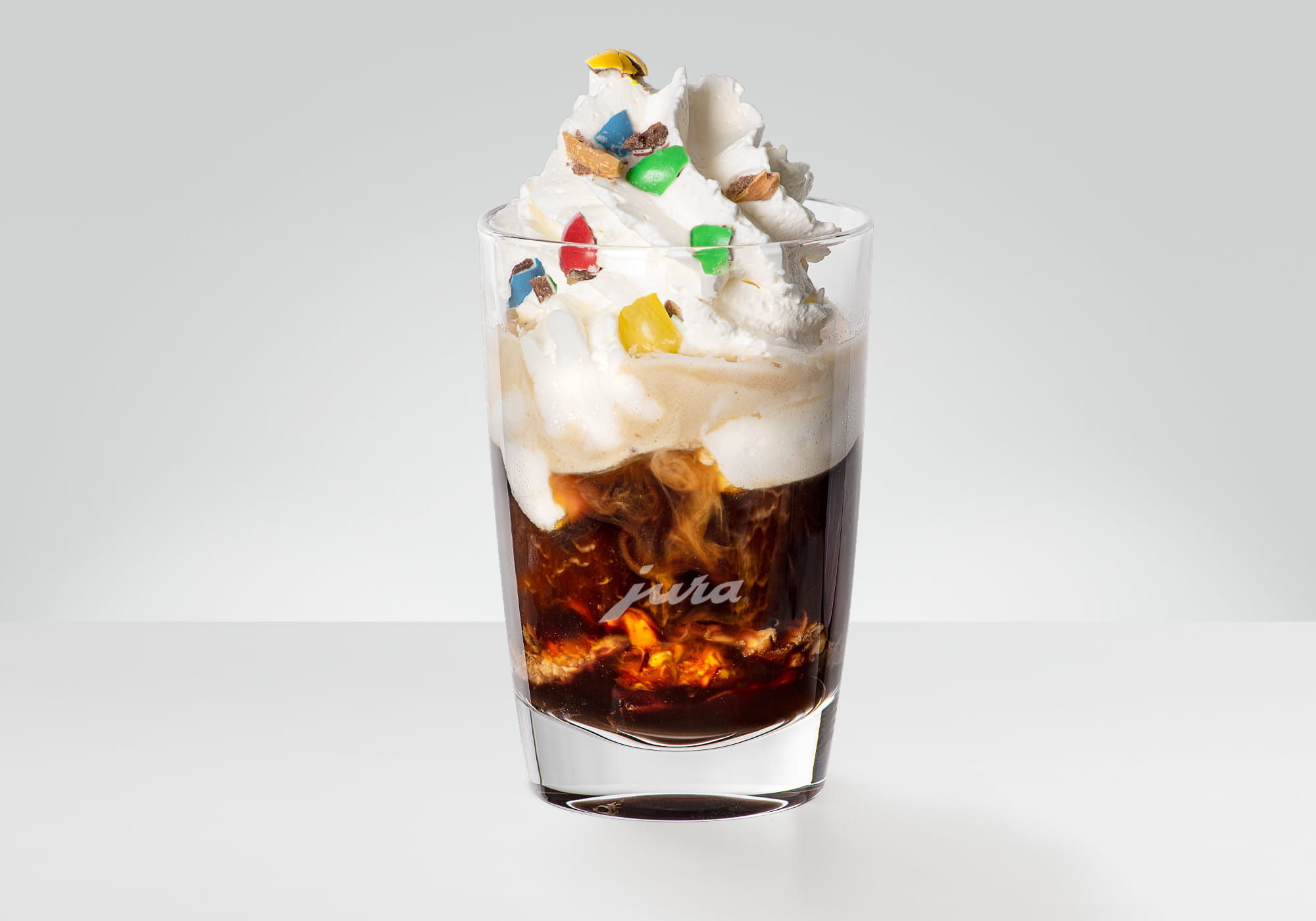 Crumble the chocolate lentils and sprinkle them over the top of the speciality coffee.